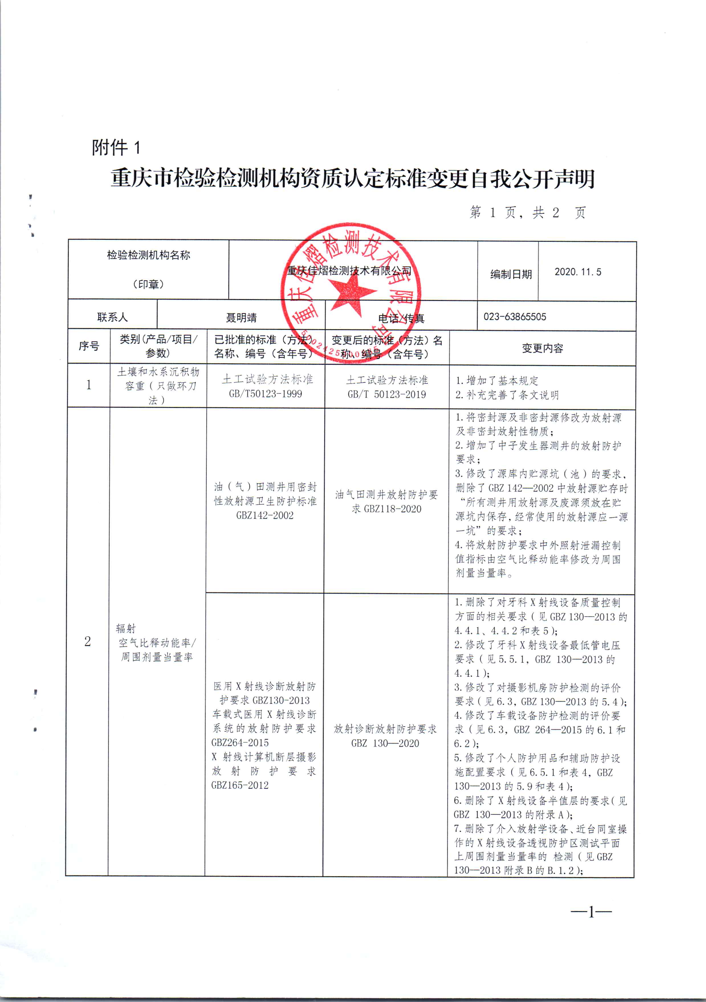 為貫徹落實(shí)《重慶市市場監(jiān)督管理局關(guān)于推行檢驗(yàn)檢測機(jī)構(gòu)資質(zhì)認(rèn)定標(biāo)準(zhǔn)變更模式改革試點(diǎn)的通知》(渝市監(jiān)發(fā)〔2019〕4號)精神,現(xiàn)將本公司“土壤和水系沉積物 容重以及輻射空氣比釋動(dòng)能率/周圍劑量當(dāng)量率”標(biāo)準(zhǔn)變更聲明如下: